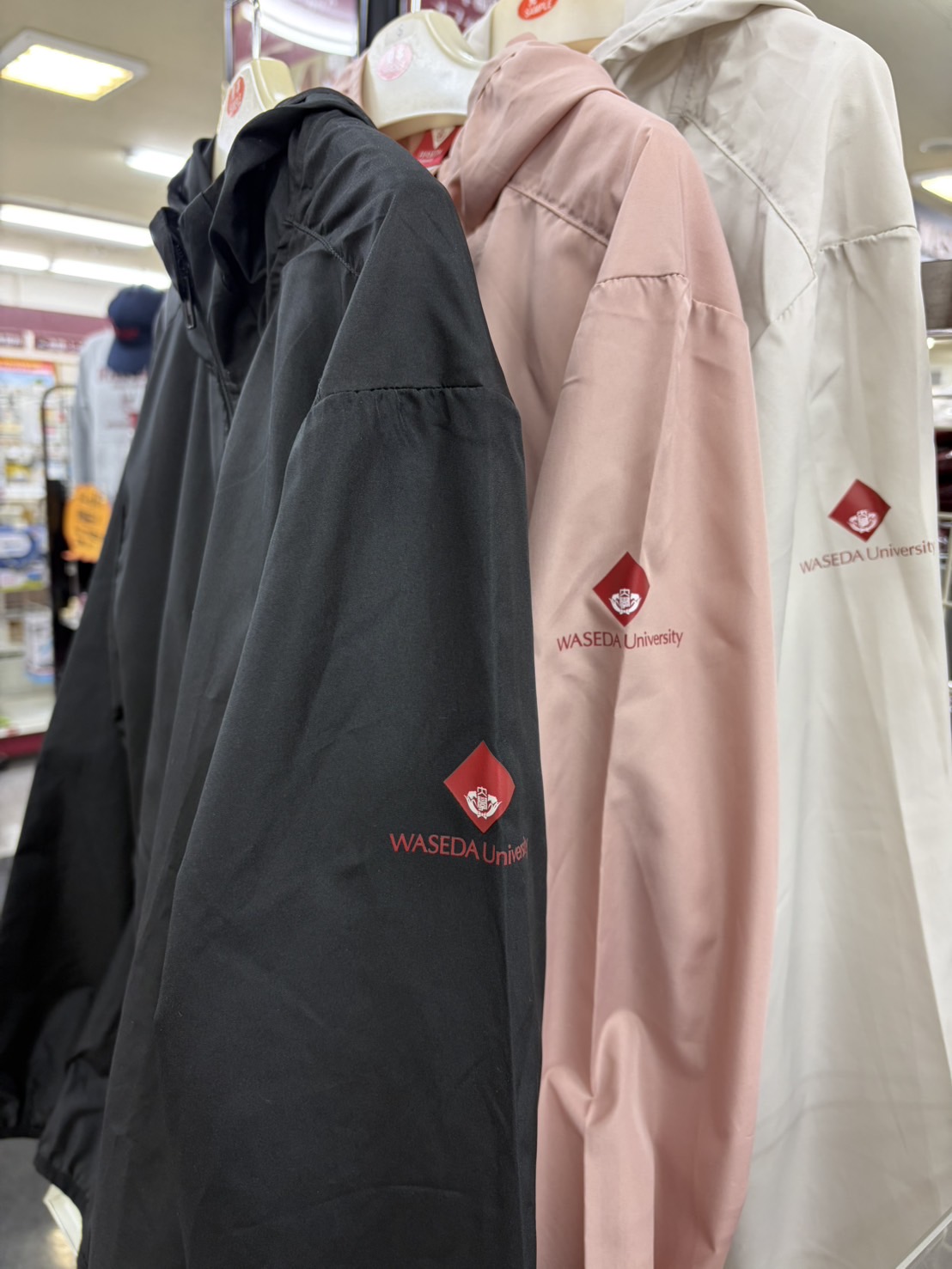 左袖上部に早稲田シンボルのプリントがアクセントになったウインドブレーカーです。